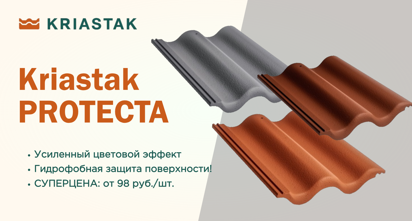 Весной 2025 года Kriastak презентовал новую линейку цементно-песчаной черепицы с гидрофобным покрытием Kriastak PROTECTA, которая быстро набрала популярность среди частных домовладений.