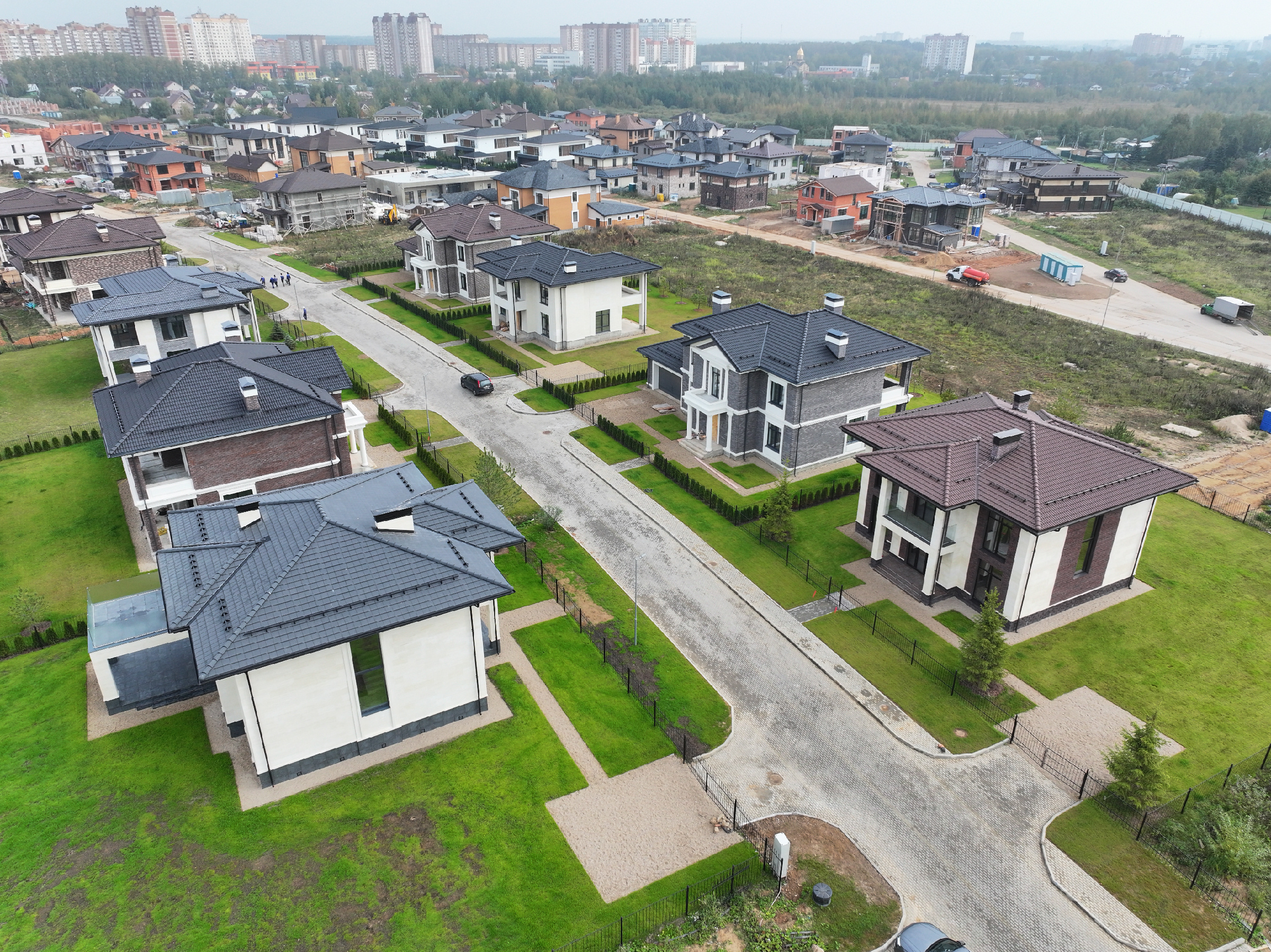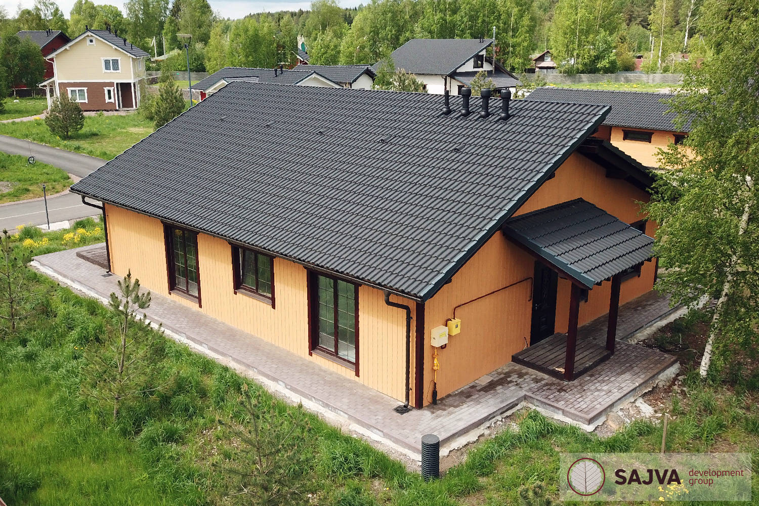 Цементно-песчаную черепицу можно увидеть в крупных коттеджных и клубных поселках Подмосковья, Ленинградской области, центральной России. Небольшие частные домовладения тоже стали отдавать предпочтение ЦПЧ ввиду высокой эстетической привлекательности и практичности.