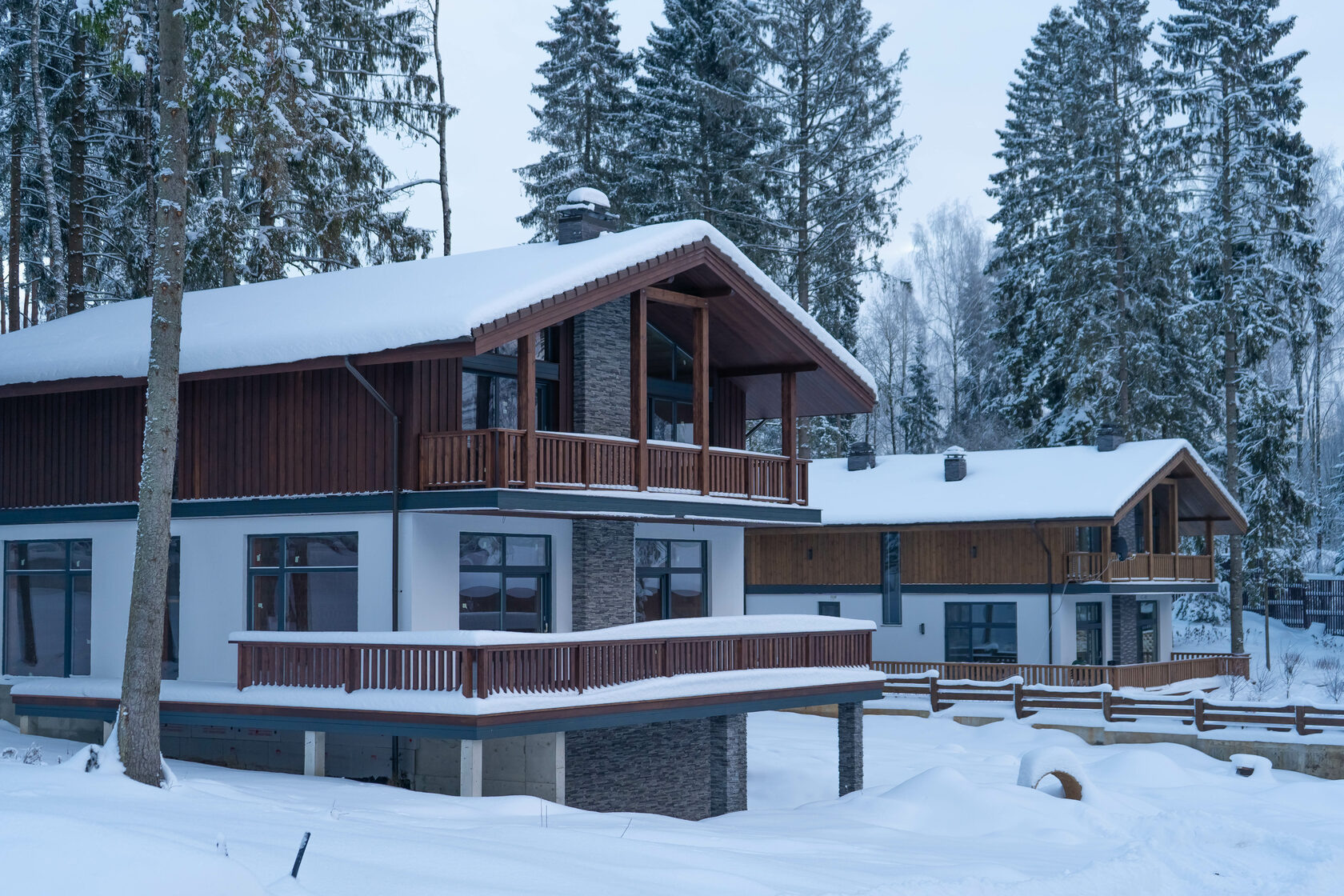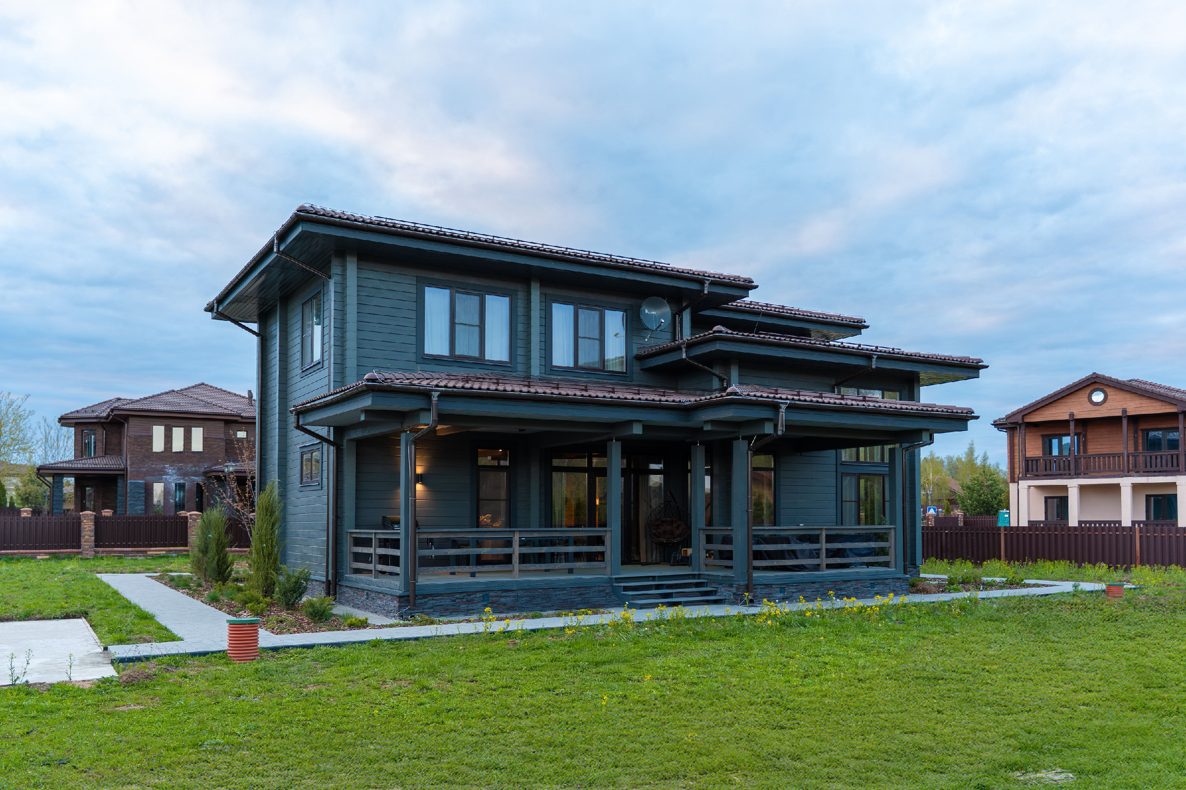 Появляется интерес к многоскатности и сложной геометрии крыш. Простые двускатные крыши уступают место проектам с большим количеством скатов, мансардными окнами, слуховыми окнами («люкарнами») и другими архитектурными элементами, которые делают облик дома сложнее и интереснее. Такие проекты можно встретить в элитных домовладениях, и стоимость возведения таких кровель кратно выше классических скатных крыш.